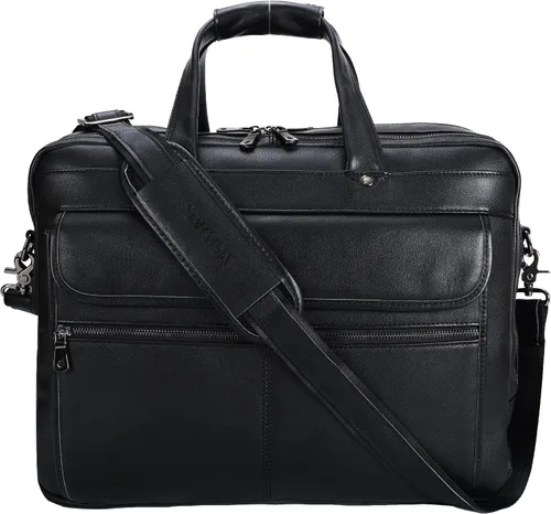STAR VISTA Scala Pro Business - Maletín de cuero de grano completo, compartimentos triples, cremalleras YKK, herrajes de latón