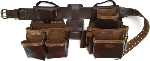 Cinturón de herramientas de 4 piezas: deja de hacer múltiples viajes para tus herramientas cuando puedas llevarlas todas a la vez con el combo Style N Craft de 4 piezas Pro Framer. Diseñado para zurdos, el cinturón de herramientas viene con 2 bolsas de herramientas y 1 soporte de martillo de metal. Cinturón de herramientas de cuero de carpintero: este combo de Style N Craft viene con un cinturón cónico de 3 pulgadas de ancho y está hecho con cuero 100% de grano completo en color bronceado oscuro. Las costuras de contraste con hilo de nailon resistente hacen que este cinturón de herramientas sea capaz de soportar situaciones difíciles. Cinturón de herramientas versátil: equipado con 17 bolsillos, incluidos seis bolsillos internos, nuestro combo de cinturón de herramientas de cuero tiene un diseño único de doble bolsa. La construcción discreta y única de nuestra bolsa de herramientas proporciona comodidad y mejora la accesibilidad de las herramientas. Cinturones de herramientas para hombres y mujeres: El cinturón de herramientas de cuero es ideal para todos y se adapta fácilmente a una cintura de 34 a 46 pulgadas (mide el tamaño de la cintura sobre la ropa). El cinturón de 3 pulgadas de ancho es cónico con una hebilla de rodillo de metal de doble punta y tiene remaches tapados para mayor seguridad. Adecuado para todas las herramientas: Con un asa fácil de transportar en ambas bolsas, nuestra resistente bolsa de herramientas puede llevar todo tipo de herramientas, incluidas las pesadas como un martillo y una barra de palanca y las más pequeñas como juegos de uñas, lápices y destornilladores.