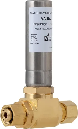 El paquete incluye: 3/8 pulgadas Comp. 1 pararrayos de martillo de agua de acero inoxidable. 【PARA ARRESTOR DE MARTILLO DE AGUA DE 3/8"】: Este pararrayos de martillo de agua en T conecta una tubería o accesorio macho de 3/8 pulgadas de diámetro exterior y hembra de 3/8 pulgadas. Su presión de trabajo máxima y temperatura pueden clasificarse hasta 250 PSI y 180°F. 【Protege tus tuberías】: el martillo de agua SUNGATOR de 3/8 pulgadas puede evitar que las tuberías se sacudan y golpeen, reduce la presión inestable del agua y el ruido, protegiendo así el sistema de plomería del hogar. Este mini pararrayos de martillo de agua residencial se utiliza para lavavajillas, inodoro, fregadero, etc. Seguro de usar: cumple con los estándares estadounidenses y cumple con los requisitos de cUPC y NSF, nuestro arrestador de martillo de agua de latón premium de 3/8 pulgadas es seguro para la distribución de agua. 【Larga duración】: forjado de latón macizo que ofrece un alto rendimiento de resistencia a la corrosión y a la abrasión, el descargador de martillo de agua SUNGATOR de 3/8 pulgadas es excelente para el sistema de montaje de tuberías, ya que puede soportar un largo período de desgaste.