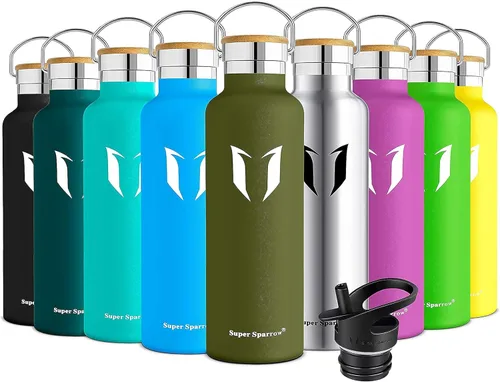 Botella de agua de acero inoxidable aislada: no confíes en botellas de agua de plástico baratas que se dividen y agrietan, nuestra botella de agua de acero inoxidable está fabricada con materiales duraderos para que pueda soportar tus entrenamientos más duros. Puede mantener el líquido caliente hasta 12 horas, y mantener la bebida fría hasta 24 horas. También garantiza que no sude o condense. Perfectamente adecuado para correr, gimnasio, yoga, oficina, al aire libre y campamento. Material libre de BPA: la mayoría de las botellas de agua de plástico tienen productos químicos y alteran el sabor de tu bebida cuando se rellenan. La botella de agua de acero inoxidable Super Sparrow está fabricada con acero inoxidable de alta calidad, libre de BPA, ftalatos, plomo u otro material tóxico para una botella de agua más segura que no desprende productos químicos. 2 tapas intercambiables: (1) tapa deportiva sin esfuerzo que ofrece una alta tasa de flujo, lo que hace que sea fácil beber de tu botella sin quitar la tapa, (2) tapa de bucle con mosquetón súper seguro para asegurar a bolsas para uso al aire libre, ¡para el más atractivo! Satisfacción garantizada: el acero inoxidable resistente al calor puede contener fácilmente bebidas frías y calientes en una botella súper versátil que puede contener tus bebidas favoritas sin deformarse bajo cambios de temperatura. ¡No lo dudes, y haz clic en el botón «Agregar al carrito» ahora! Diseño y funcionalidad de alta calidad: hemos diseñado la botella Super Sparrow para que luzca y funcione mejor que cualquier otra botella de agua de acero inoxidable. Tiene una forma ergonómica para hacer que el uso con una sola mano sea sencillo, perfecta para uso resistente, a diferencia del plástico barato que puede romperse y agrietarse. Es tanto elegante como conveniente para usar, y viene en una caja para regalo.