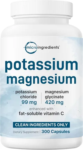 Micro Ingredients ofrece un complejo de cloruro de potasio puro y glicinato de magnesio, mejorado con vitamina C soluble en grasa fácilmente absorbida para un apoyo antioxidante adicional. Una fórmula sin relleno con solo ingredientes activos. Cada botella proporciona 300 cápsulas con 100 porciones, entregando 99 mg de potasio como cloruro de potasio, 420 mg de magnesio como glicinato de magnesio y 90 mg de vitamina C como palmitato de ascorbilo. El potasio, el magnesio y la vitamina C son micronutrientes importantes que trabajan juntos para apoyar la hidratación, la función muscular y la salud del corazón. Experimente una fórmula de electrolitos minerales biodisponibles que solo utiliza minerales quelados puros y vitaminas solubles en grasa fácilmente absorbidas para una mejor absorción. Suplementos de potasio premium sin OMG. Fabricado sin rellenos, soja, lácteos, gluten, pescado, mariscos, cacahuetes y nueces de árbol. Los ingredientes deben pasar nuestras pruebas de laboratorio de terceros para garantizar un producto seguro, puro y potente.