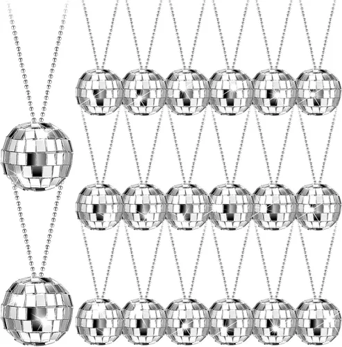 Sureio 20 adornos de bola de discoteca con espejo, decoraciones de fiesta de discoteca para colgar en plata, reflectantes, collares de bolas de Año