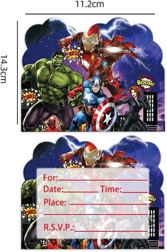 Invitaciones de cumpleaños de superhéroes, ideal para fiestas de cumpleaños de superhéroes para niños. Suministros de fiesta de superhéroes, decoraciones de fiesta de superhéroes