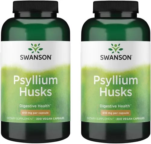 Swanson Suplemento dietético de fibra de cáscara de psyllium 610 mg 300 cápsulas - (paquete de 2)