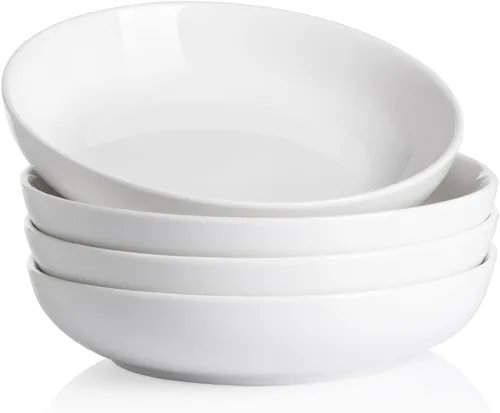 Cuencos de porcelana versátiles: estos cuencos de porcelana de 25 onzas son adecuados para pasta, ensalada, sopa, postre, fruta, helado, arroz, etc. Descubrirías que podrías usarlos para mucho más que pasta. También se puede utilizar como plato de cena para comer carne o pizza. Apilables y fáciles de limpiar: estos platos son apilables, lo que puede ahorrar espacio en tu armario. Fácil de limpiar, puedes lavarlos con jabón y agua caliente o colocarlos en tu lavavajillas. Cuencos anchos con diseño poco profundo: los alimentos de gran tamaño se pueden poner fácilmente y fácil de quitar todo con esta forma. Además, podría enfriar rápidamente la comida, ahorrando tiempo para probar deliciosa comida. Fiables y seguros: los cuencos de porcelana SWEEJAR insisten en utilizar la cerámica resistente y duradera que son ideales para un uso prolongado. Estas ensaladeras son aptas para lavavajillas y microondas. Platos clásicos y seguros para ti y tu familia. Exquisito regalo para cualquier persona: estos cuencos no solo son adecuados para amigos y familiares que están tratando de optimizar el espacio de la cocina, sino que también pueden ser un regalo maravilloso para gourmets, recién casados, fiestas de inauguración de la casa, cumpleaños y vacaciones.