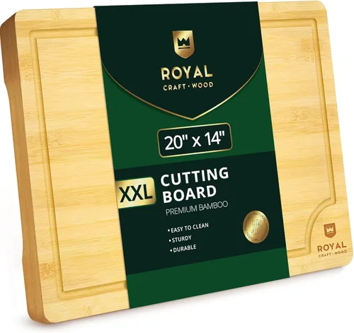 - - Compra tranquilo y disfruta de un diseño galardonado y su uso versátil. - Extra grande con asas laterales para usarlo como tabla para cortar queso o bandeja de servir. Calidad profesional, apto para cuchillo: El bambú no causa desgaste excesivo en los cubiertos. Ranura integrada que retiene el jugo de la carne, frutas o verduras. El bambú 100% orgánico es totalmente natural, resistente a plagas y bacterias, absorbe menos líquido y presenta menos riesgo de contaminación cruzada.