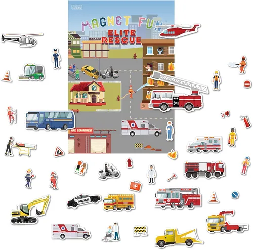 GRANDLMOON Tablero magnético portátil Elite Rescue Team Fire Fighting Camiones Policía Trauma e ingeniero (41 piezas)