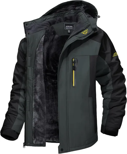 TACVASEN Chaquetas de esquí para hombre, impermeables, resistentes al viento, senderismo, snowboard, forro polar con capucha