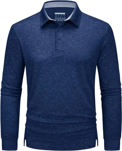 TACVASEN Polo de 3 botones para hombre, manga larga, casual, elástico, ajuste regular, para deportes, senderismo, golf