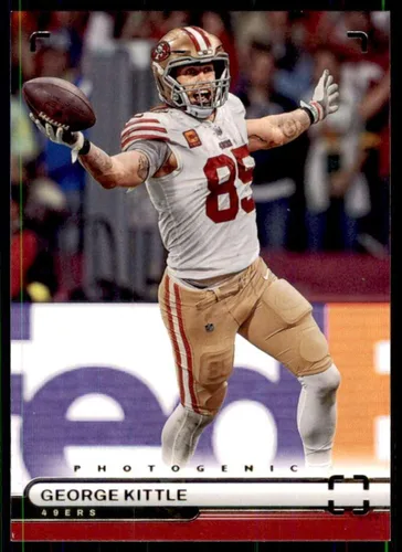 Tarjeta de intercambio de fútbol Panini Chronicles Photogenic #13 de George Kittle San Francisco 49ers 2022