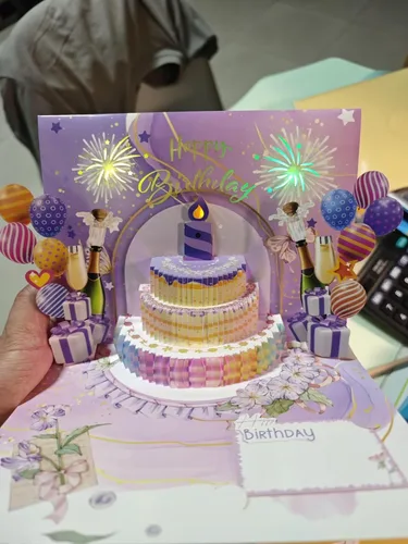 Tarjetas de cumpleaños desplegables 3D, tarjeta de feliz cumpleaños con luces, sonido musical, diseño de pastel con fuegos artificiales, para mamá