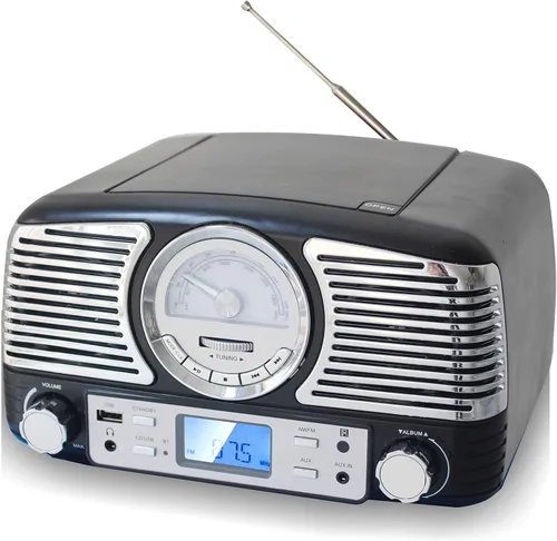 TechPlay QT62BT - CD estéreo compacto de diseño retro, con perilla giratoria AM/FM, recepción Bluetooth inalámbrica y puerto USB. con entrada Negro
