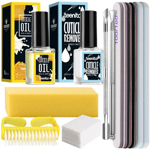 Teenitor Kit removedor de cutículas, kit de cuidado de uñas con removedor de cutículas, aceite de lima de uñas, pulidor de cutículas, empujador de