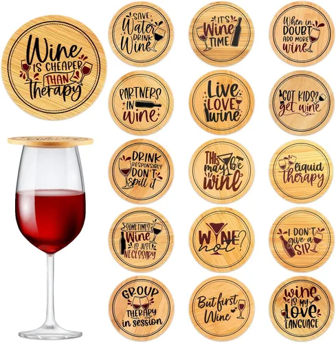Tessco para ti 16 piezas de cubiertas para copas de vino divertidas de madera para bebidas de charcutería para mantener fuera a los insectos,