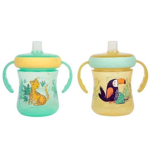 Ayuda a tu pequeño a pasar del biberón al vaso con sus personajes favoritos de la selva en la taza de entrenamiento The First Years Soft Spout. La boquilla de silicona fue diseñada para crear una transición suave de biberón a taza para tu bebé a medida que crece. Trabajamos con un especialista en alimentación pediátrica para asegurarnos de que tanto el tamaño y la forma del pico ayuden a promover el desarrollo oral adecuado mientras beben sus bebidas favoritas. Esta taza para bebé también ayuda a prevenir derrames para que las bebidas permanezcan dentro de la taza y fuera de tu pequeño viajero mientras están en movimiento. Es natural que los más pequeños dejen caer cosas, pero las asas de fácil agarre hacen que sea fácil agarrarse mientras exploran. Si terminan dejando caer una de sus nuevas tazas para niños pequeños, las tapas de los vasos para sorbos tienen parachoques DropGuard para ayudar a prevenir la rotura si se caen al suelo. Cuando todos terminen con su bebida, esta taza de silicona con boquilla es apta para lavavajillas y está hecha sin BPA para una limpieza sin complicaciones. El diseño apto para bebés y los gráficos temáticos de la jungla hacen de este juego de tazas de entrenamiento un complemento instantáneo al carrito para una búsqueda de registro de bebé.