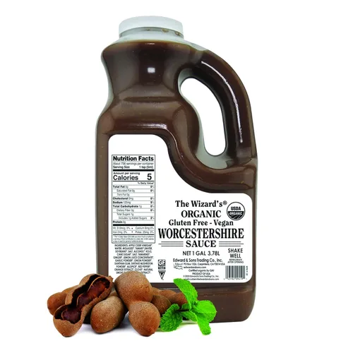 ¿Para qué sirve The Wizard's Sauces, Salsa Worcestershire vegana orgánica sin gluten, tamaño de servicio de alimentos, botella de 128 onzas?