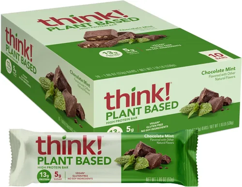 Cada bocado de nuestra barra de chocolate y menta está lleno del refrescante sabor de la menta cubierta de rico chocolate negro que proporciona un sabor indulgente que satisface el hambre. 0.46 oz de proteína vegetal: nuestra barra de proteínas vegana/vegetal más alta es una mezcla de guisantes, arroz integral y proteína de calabaza para los consumidores que buscan una barra nutricional multiusos que puede pasar de un refrigerio que aumenta la energía a un reemplazo de comida cuando se combina con una pieza de fruta. 0.18 oz de azúcar: Sin edulcorantes artificiales - no contiene sucralosa, sacarina, aspartamo, acesulfamo de potasio, neotame o advantame. Ideal para aquellos que observan su ingesta de azúcar (IG bajo). Nos enorgullecemos de seleccionar ingredientes sin colores ni sabores artificiales. *Todos los ingredientes se han producido sin ingeniería genética. Incluye 10 think! Barras de chocolate y menta.