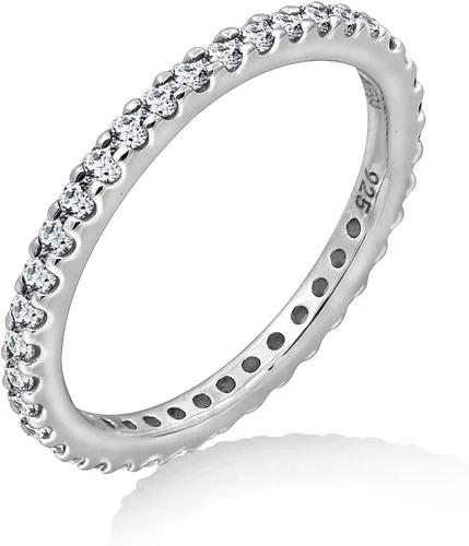 Tienda Essentials Anillo de plata de ley chapado en platino o oro con circonita cúbica redonda de elementos infinitos