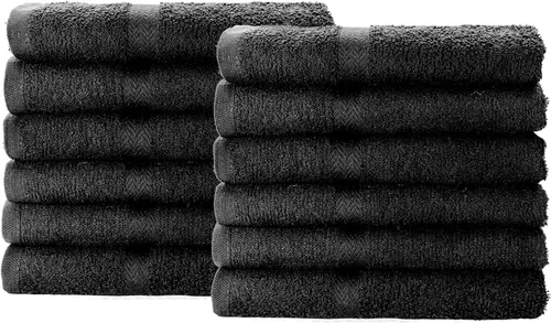 algodón Incluye 12 toallas de mano negras tejidas con 100 por ciento de algodón que miden 16 x 27 pulgadas cada una (Nota: Las toallas NO son resistentes al blanqueo) Las toallas de secado rápido son perfectas para usar en tu salón, spa, gimnasio, piscina, hogar y muchos otros lugares Hechas con un material fácil de limpiar para que absorban más, retengan la humedad y permanezcan vibrantes, así como para mantenerse frescas y lucir limpias durante más tiempo Perfecto para usar en salones, baños, cocina, gimnasio, spa, oficina y limpieza general, ofreciendo una sensación muy suave, cómoda y ligera, haciéndolos lujosos y funcionales para ti y tus seres queridos NO UTILICE blanqueador, suavizantes de tela ni plancha, ya que puede dañar su calidad; siempre lave las toallas por separado para minimizar la pelusa