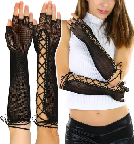 ToBeInStyle Guantes calentadores de brazo sin dedos con cordones para mujer