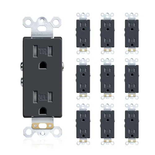 Toma eléctrica decorativa de 15 A, receptáculo dúplex de grado residencial estándar, resistente a manipulaciones, 2 polos y 3 cables, autoconexión a