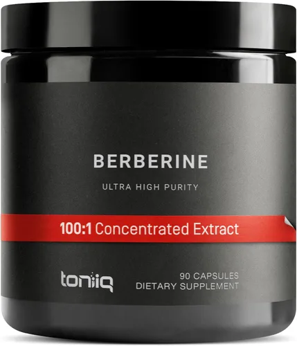 Toniiq Ultra Alta Potencia Berberina HCl de Los Himalayas - Extracto Concentrado 100:1 - Berberina HCl 97% Probada en Laboratorio - 90 Cápsulas