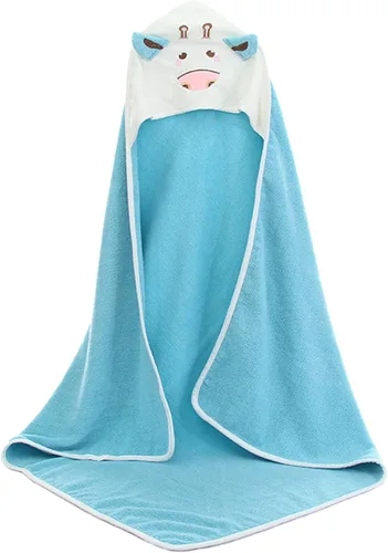 TONWHAR Toalla de baño con capucha para bebé, 100% algodón, toalla de ducha súper absorbente, regalo con Newbron, toalla de baño de vaca lechera Azul