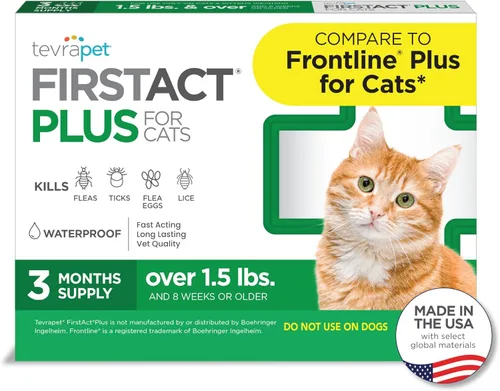 Tevrapet (r) firstact plus para gatos tevrapet(r) firstact plus para gatos ofrece protección de calidad veterinaria contra pulgas y garrapatas y evita que se desarrollen todas las etapas de pulgas. Este tópico elimina pulgas, huevos de pulgas, garrapatas y piojos, utilizando los mismos ingredientes activos (fipronil + (S) -metopreno) que el peluche Frontline) para gatos, pero a un precio más bajo. Características: Para uso en gatos de 8 semanas y mayores, 1. 5 libras. Y mata pulgas, huevos de pulgas y larvas, piojos y todas las etapas de las garrapatas ayuda en el control de infestaciones sarcópticas de ácaros de la sarna impermeable los mismos ingredientes activos que el artículo Frontline Plus (r) Especificaciones: ingredientes activos: fipronil + (S) -metopreno tamaños: para gatos 1. 5 libras. Y sobre dosis: 3 aplicaciones, una al mes cómo APLICAR: parte El pelo en el cuello en la BASE del cráneo hasta que la piel sea visible. Coloque la punta del aplicador sobre la piel y apriete el aplicador para aplicar todo el contenido directamente sobre la piel de su gato. No permita que su gato ingiera este producto, ni que se ponga el producto en sus ojos. La colocación adecuada del producto en su gato minimizará la oportunidad de que el gato lame e ingiera el producto. Evite con cuidado permitir que el producto se salga del lado del gato. Deseche el aplicador vacío y el embalaje como se describe en la sección de almacenamiento y eliminación. En condiciones normales, el producto sigue siendo efectivo durante un mes. En casos de infestación grave por pulgas, el retratamiento puede ser necesario antes de un mes. No vuelva a aplicar más de una vez cada siete (7) días. Una vez que se logra el control de pulgas, regrese a un programa de solicitud mensual. Precauciones: peligros para los humanos. Dañoso si se ingiere. Lávese bien las manos con agua y jabón después de manipularlo y antes de comer, beber, masticar chicle, usar tabaco o usar el inodoro. Peligros para los animales domésticos. Solo para uso externo. Solo para uso externo en gatos. No utilizar en gatitos que pesen menos de 1. 5 libras. Y menos de 8 semanas de edad. No utilizar en perros. No utilizar en otros animales. Individual