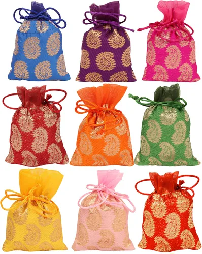 Touchstone Bolsas con cordón de tela tradicional india hecha a mano brocado. Perfecto para regalos, bolsas de joyería, monederos Potli.