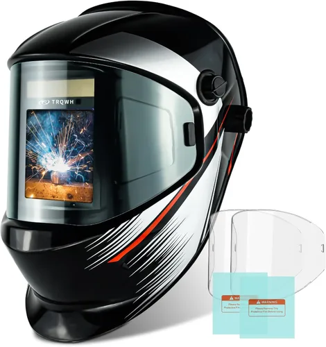 TRQWH Casco de soldadura con oscurecimiento automático, visión grande, color verdadero, máscara de soldadura con 4 sensores de arco, ajustable,