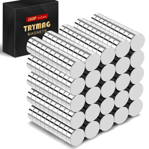 TRYMAG Imanes pequeños de neodimio de 6x2mm, 260 piezas de imanes pequeños de tierras raras para pizarra, pequeño imán redondo en forma de disco