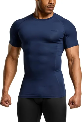 TSLA Camisas de compresión para hombre UPF 50+, de manga corta, de secado rápido, camisa de entrenamiento atlético, protector de erupciones para