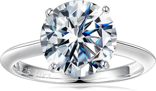 Turandoss Anillos de moissanita para mujer, 2-3 quilates redondos de color D VVS1 Clarity Lab creado en laboratorio, anillos de compromiso de oro