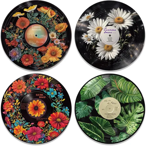 twinklemon 4 unidades de decoración de discos de vinilo de 12 pulgadas, decoración de habitación hippie indie, arte de pared botánico para