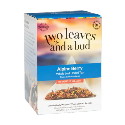 Delicioso té de hierbas: el té de hierbas Alpine Berry es naturalmente dulce y agrio con hibisco, hojas de mora y cáscara de naranja, y naturalmente libre de cafeína. Este té de bayas brillantes elabora un tono rojo en tono joya gracias al hibisco popular en todo el mundo por su sabor agrio, similar al arándano. El sabor nos recuerda a una caminata en las montañas de Colorado, donde vivimos. Nos encanta helado en verano, o mientras esquias, caliente con miel Bolsitas de té de hoja entera: La forma y el tamaño especiales de las bolsitas permiten que nuestras hojas de té tengan más espacio para infundirse completamente, proporcionando un sabor más completo. Hacemos que nuestro té de calidad sea accesible utilizando sobres ecológicos a base de plantas y comercialmente compostables. Caliente o frío: perfecto para bebidas calientes o heladas, senderismo, esquí o cualquier aventura al aire libre. Una opción refrescante y estimulante para cualquier momento del día Two Leaves and a Bud es una compañía de té independiente que abastece, sorbe y bebe el mejor té que encontrarás en cualquier lugar. Con sede en Basalt, Colorado, nuestro equipo es un apasionado del té de calidad Ingredientes de calidad: hibisco, orujo de manzana, cáscaras de rosa mosqueta, hojas de mora dulce, sabor natural, cáscara de naranja, piezas de frambuesa