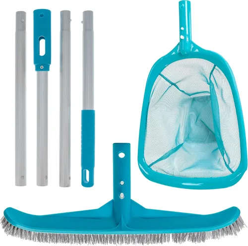 Kit de mantenimiento de piscina que es ideal para limpiar y mantener una piscina, spa o estanques limpios La red tiene una red de malla de nailon ultrafina de 6 pulgadas de profundidad y es excelente para limpiar los mejores desechos El cepillo tiene cerdas de nailon duraderas para barrer fácilmente los desechos de paredes, suelos y escalones Incluye poste telescópico de longitud ajustable de 5 secciones Su socio de confianza para el cuidado de la piscina: U.S. Pool Supply ofrece soluciones de limpieza y mantenimiento de piscinas asequibles y de grado profesional, lo que le permite cuidar fácilmente su propia piscina y eliminar la necesidad de costosos técnicos de servicio de piscinas programados.