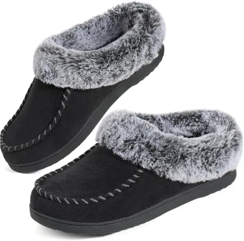 ULTRAIDEAS Pantuflas de espuma viscoelástica con forro de piel para mujer para interiores y exteriores, zapatos de casa para mujer