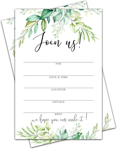Únase a nosotros Invitaciones con sobres - Greenery, Invitaciones de eucalipto para toda ocasión para despedida de soltera o baby shower, boda,