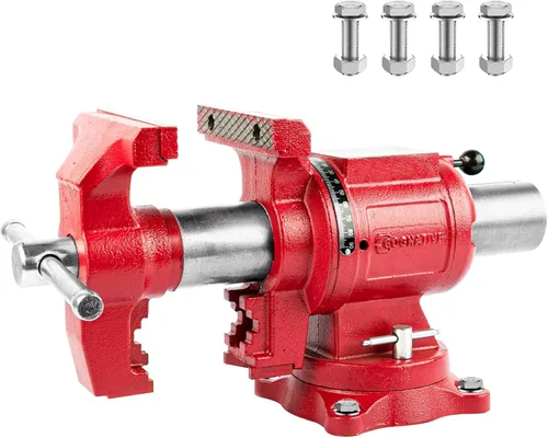 UPG - Tornillo de banco mejorado de 5 pulgadas con tornillo de banco de hierro dúctil, tornillo de banco multiusos de 360° con yunque y pasadores de