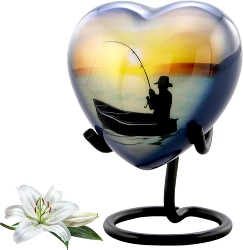 Una urna de recuerdo es perfecta para guardar un pequeño recuerdo de su ser querido, como tierra o arena de un lugar especial, un mechón de cabello, pétalos de flores secas, una nota especial o una porción de cenizas de cremación. Una forma única y rentable de mantener los restos de los seres queridos Urna de recuerdo de corazón de pesca