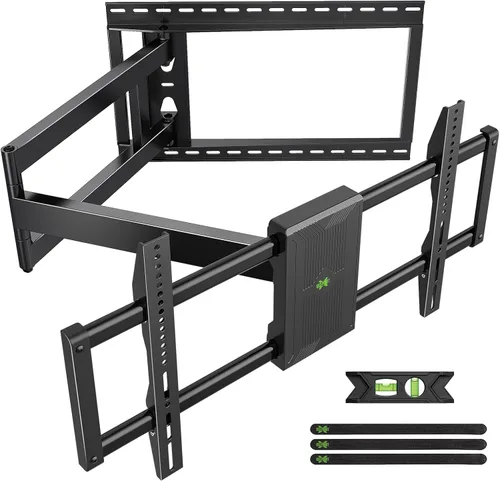 La mejor compatibilidad: el soporte de TV de brazo largo resistente se adapta a la mayoría de televisores de 42 a 95 pulgadas de hasta 150 libras con patrones VESA de 200 x 100 a 31.496 x 15.748 in y se adapta a espacios de madera de 16, 18, 20, 24 pulgadas. 【Visión ajustable cómoda】El soporte de TV giratorio e inclinable de brazo largo incluye inclinación de +5°/-12° para reducir el deslumbramiento, giro de ±90°, el nivel se ajusta ±3° para una máxima flexibilidad de visualización. Todas estas características pueden ayudarlo a ajustarse a ángulos satisfactorios y obtener la mejor vista de visualización en cualquier momento, lo que le permite disfrutar de sus programas favoritos cómodamente. 【Extensión de 40 pulgadas de largo】 Soportes de pared para TV con brazo extra largo que se puede sacar hasta 40 pulgadas o retraer hasta 3.02 pulgadas de la pared. El soporte de TV de extensión súper larga puede extenderse 40 pulgadas desde la pared para cubrir más posiciones de visualización. Si quieres montar en la esquina, este soporte de pared para TV de brazo largo es tu mejor opción Fácil instalación: las instrucciones detalladas y las piezas etiquetadas se colocaron perfectamente en el paquete de montaje en pared de TV, tenemos el nivel de accesorios y velcro para ayudarte mejor en la instalación. El paquete viene con plantilla de montaje, lo que hace que la instalación del soporte de montaje de TV sea más rápida. Soportes de montaje de TV de 90 grados adecuados para estas paredes: pernos de madera de 16 a 24 pulgadas, paredes de hormigón sólido y paredes de ladrillo. No lo instales solo en paneles de yeso. Si necesitas anclajes de hormigón de 0.394 x 1.969 in, háznoslo saber para obtenerlo. 【Servicio al cliente de calidad】Nuestra empresa se ha establecido durante treinta años, con una rica experiencia y excelente calidad del producto. Por favor, no dudes en comprar con confianza, proporcionamos un servicio posventa profesional. Puedes ponerte en contacto con nuestro equipo de servicio al cliente profesional para cualquier problema de montaje en televisor. Pueden darle consejos adecuados antes de la venta y ayudarlo a resolver problemas después de la venta.