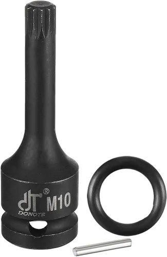 【Tamaño】Toma de corriente de 1/2 pulgada, broca estriada M10 (0.394 in), longitud total de 3.07 pulgadas. Fuerza de torsión: el acero al cromo molibdeno proporciona una excelente durabilidad y resistencia con cada movimiento de impacto; acabado de fosfato negro para una protección adicional contra el óxido y la corrosión. Diseño biselado: los extremos biselados se insertan suavemente en el cabezal del cierre, reduciendo el desgaste. 【Agujero de pasador】El diseño individual de la base del agujero añade seguridad adicional al colocar un pasador de bloqueo para mayor estabilidad al ejercer un fuerte movimiento de torsión. Herramientas ideales: úsalo con trinquete para mejorar la velocidad en el apriete de los sujetadores de accionamiento estriado. Y el producto no tiene propiedades de aislamiento y no es adecuado para entornos eléctricos.