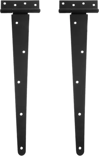 Bisagras de puerta de la camiseta: Material: hierro; acabado superficial: galvanizado; Color: negro; longitud: 14.173 in; ancho: 4.331 in/4,33 pulgadas; contenido del paquete: 2 bisagras de puerta en T Diseño de correa en T: estas bisagras de cobertizo con correa en T cuentan con un diseño clásico y atractivo que agrega un toque de encanto rústico a cobertizos, puertas, puertas de granero y otras aplicaciones. Buena durabilidad: hechas de hierro de buena calidad con un acabado de zinc, estas bisagras en T están construidas para soportar la prueba del tiempo y son resistentes al óxido, lo que se adapta al uso al aire libre. Están fabricados pensando en la durabilidad, asegurando un rendimiento confiable y un uso duradero. Fácil instalación: con agujeros preperforados, instalar estas bisagras de puerta con correa en T es muy fácil con algunos tornillos. Puede conectarlos rápida y fácilmente a la aplicación deseada. Permiten que tu cobertizo o puerta se abra y cierre sin esfuerzo mientras lo sostienen de forma segura en su lugar. Bien aplicación: estas bisagras de cobertizo en T ofrecen una funcionalidad suave y resistente. Proporciona un soporte confiable y un funcionamiento suave para gabinetes, cajas de almacenamiento, puertas de cobertizo, puerta de jardín, puertas estables, puertas de granero y más.
