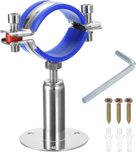 Correa de tubo de abrazadera ajustable: apta para diámetro exterior de tubería. : 15 - 19mm/0.59" - 0.75"; Rango de altura de ajuste: 1.969 - 3.543 in; Ampliar longitud total: 4.606 in; diámetro del soporte. : 60mm/2.36"; Tamaño total del tornillo: M6x30mm; Contenido del paquete: 1 pieza x soporte de tubería; 1 llave M6; 3 tornillos de expansión. Por favor, de acuerdo con el diámetro exterior de la tubería, elige el tamaño correcto de la correa de tubería. Material de metal: hecho de material de acero inoxidable 304 de buena dureza, resistente al óxido y a la corrosión, no es fácil de romper o deformar, lo suficientemente resistente para un uso a largo plazo, se puede utilizar en ambientes de alta temperatura o húmedos, adecuado para interiores y exteriores. Abrazadera de tubo ajustable: la altura de la base de la brida del soporte es ajustable, con un rango de ajuste de 1.969 in a 3.543 in, apto para montaje en pared y montaje en techo. La altura de la base de la brida del soporte es ajustable, con un rango de ajuste de 1.969 in a 3.543 in, apto para montaje en pared y montaje en techo. Con un cojín de goma, puede aumentar la fricción y encajar firmemente con el tubo, la tuerca puede bloquear la brida y la varilla del tornillo firmemente y evitar que se caiga fácilmente. Fácil de instalar: el paquete viene con piezas de montaje para una instalación rápida, simplemente marca la posición deseada, luego instala el soporte con el tornillo de expansión y los tornillos, y fija la abrazadera de tubo a la altura deseada. [Amplia aplicación] - Las abrazaderas de tubo se pueden utilizar para fijación de tuberías, tubos o varillas, soporte de tubería, fijación de tuberías, soporte de poste y más, bueno para la cocina, baño, oficina, etc.