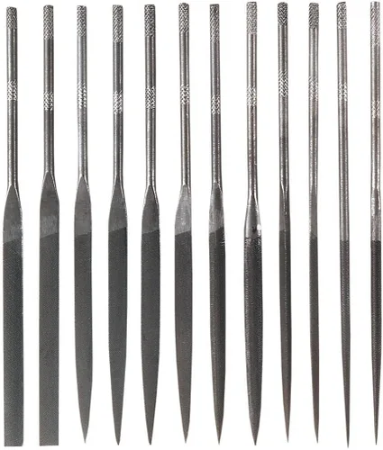 El juego de limas de agujas de 12 piezas incluye diferentes tipos de archivos y formas: pasador, igualador, plano, marcado, articulación, cuchillo, semicircular, redondo, cortante, cuadrado, 3 cuadrados y archivos cruzados. Construcción de acero de alto carbono: para mayor resistencia y durabilidad, aguja de patrón de corte suizo para dientes de corte cruzado de precisión para un llenado preciso y uniforme, asas moleteadas para un agarre seguro, práctica bolsa de almacenamiento incluida