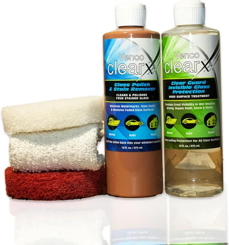 Elimina el óxido, las manchas quemadas y las manchas de agua: el esmalte de vidrio Venco Clear X elimina eficazmente las marcas de óxido difíciles, las manchas quemadas, la oxidación y las manchas de agua dura, dejando sus superficies de vidrio impecables y claras. Protección de vidrio de larga duración contra elementos: el protector de vidrio incluido proporciona una capa duradera que repele el agua, la nieve y la suciedad, asegurando que su vidrio permanezca más limpio y más resistente a la suciedad relacionada con el clima durante hasta 4-6 meses. Aplicación versátil para múltiples superficies: adecuado para su uso en yates, parabrisas de automóviles, ventanas de casa, casas rodantes, puertas de ducha y más, Venco Clear X ofrece una potente solución de limpieza y protección para varias superficies de vidrio. Botellas grandes de 16 oz para uso extendido: Estas botellas más grandes de 16 oz ofrecen suficiente producto para trabajos de limpieza más grandes y son ideales para mantenimiento regular o proyectos grandes. Recomendamos utilizar máquinas pulidoras, como pulidoras Makita, para obtener los máximos resultados. Fabricado en los Estados Unidos con calidad premium: fabricado en los Estados Unidos, este kit de esmalte y protector de vidrio garantiza resultados de alto rendimiento para uso marino, automotriz y residencial. Nota: no apto para uso en plexiglás, superficies de plástico o vidrio tintado con película de plástico.