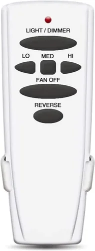 Control remoto del ventilador de techo: es solo para el control remoto de mano. Este mando a distancia tiene botón REVERSE. Si tu transmisor original se ve diferente de este control remoto, compra un kit completo con un receptor en la tienda. Reemplazo del mando a distancia del ventilador de techo: no es universal, este es un reemplazo para el mando a distancia original de Hampton Bay UC7078T FAN-HD5 KUJCE9013 FAN-53T UC7030T (este paquete no incluye un receptor y batería de 9 V). Control remoto del ventilador: hay cuatro botones (HI, MED, LO, FAN OFF) para controlar la velocidad del ventilador y apagar. El botón LIGHT DIMMER controlará el brillo del atenuador y lo apagará. El REVERSE controla el avance o retroceso del ventilador de techo, y el receptor emparejado debe admitir la función de marcha atrás. Fácil instalación: comprueba el control remoto antiguo y consulta los interruptores DIP de la serie. Use un bolígrafo para deslizar el interruptor del nuevo control remoto, coincida con el modo del anterior. Establecer el mismo código en el transmisor y el receptor o el mando a distancia original. Notas de compatibilidad: este control remoto no es universal, es un reemplazo para el mando a distancia Hampton Bay Hunter Craftmade UC7078T/FAN-HD que funciona a frecuencia de 303.9 MHz. Compruebe el número en la parte posterior de su control remoto original, necesita tener FCC ID/Modelo: CHQ8BT7078T/CHQ7078T/UC7078T, L3H2003FANHD/L3H2010FANHD/L3HMAY97FANHD/FAN-HD o HD6 con llave inversa, de lo contrario el control remoto puede No coincide con tu receptor.
