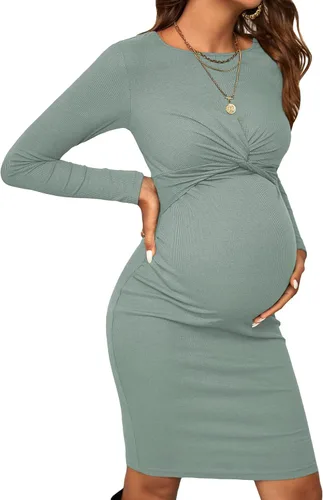 Verdusa Vestido ajustado de maternidad con cuello redondo y manga larga para mujer