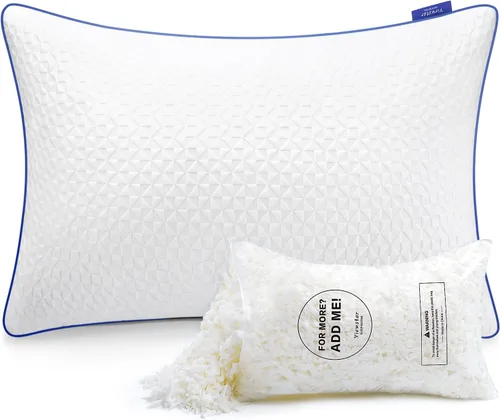 Loft ajustable y firmeza: a los durmientes exigentes también les gustarán las almohadas ajustables Viewstar. Simplemente desabrocha la funda, luego agrega o retira el relleno a tu gusto. Gran soporte para cuello y hombro: las almohadas de espuma viscoelástica Viewstar están diseñadas con un enfoque ergonómico. La espuma viscoelástica flexible se adapta perfectamente a tu cabeza y cuello, asegurando una alineación óptima de la cabeza, el cuello y la columna vertebral. Comodidad de larga duración: el relleno de espuma viscoelástica flexible y elástica mantiene la almohada rellena toda la noche y nunca se aplana. Di adiós a los ajustes constantes y disfruta ininterrumpido para dormir mejor. Materiales confiables de alta calidad: la funda ultrasuave y transpirable, combinada con espuma viscoelástica triturada y un relleno ventilado, mantiene las almohadas de cama frescas y frescas. Está certificado CertiPUR-US, lo que garantiza materiales seguros y libres de productos químicos para tu comodidad. Uso sin complicaciones: Las almohadas de hotel vienen selladas al vacío para su envío y florecen como nuevas cuando se abren. Por favor, airea durante 24 horas o lava la cubierta exterior para disipar los olores. La cubierta exterior puede ir directamente a tu lavadora y secadora.