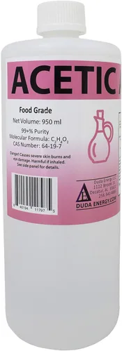 Grado alimenticio, 99.85+% puro, se congela a 62°F Se puede utilizar para hacer 5-20% de vinagre común para aplicaciones alimentarias Uso en cocina, limpieza y más Botella de HDPE con tapa a prueba de niños